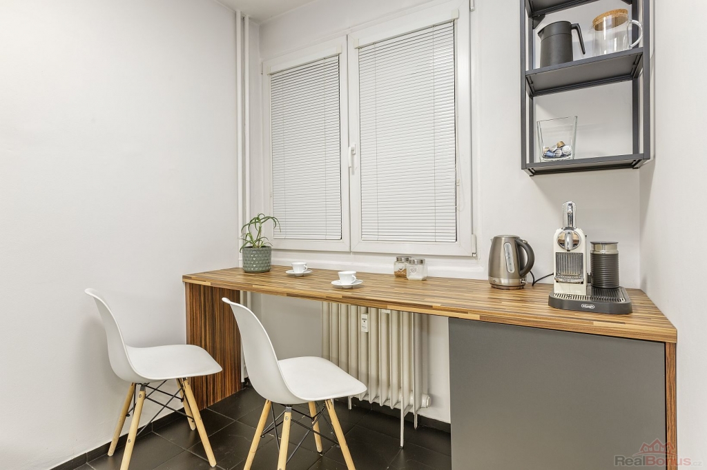 Byt v minulosti prošel téměř kompletní rekonstrukcí. Pronajímá se jako částečně zařízený (pračka se sušičkou, lednička, šatní skříně, postel s úložným prostorem, komoda, poličky, konferenční stolek, křesla).