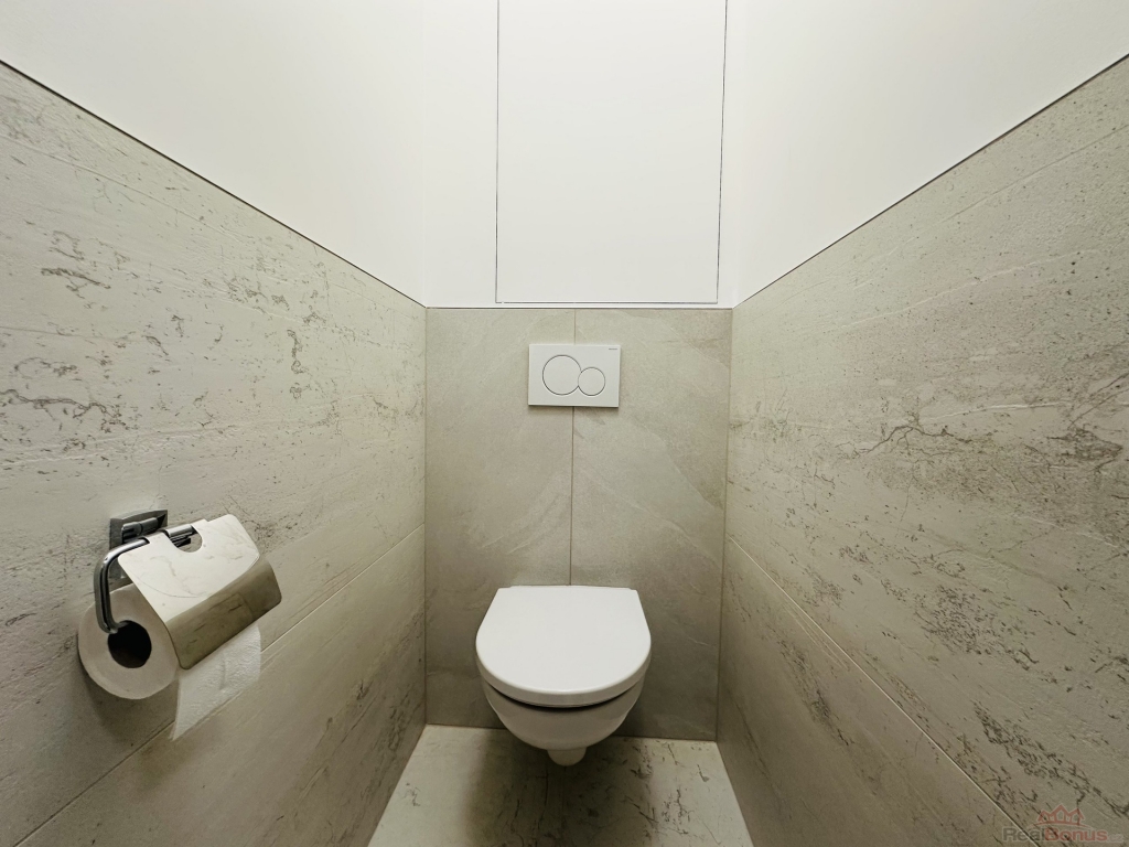 WC i koupelna prošla zdařilou rekonstrukcí, zděné jádro. Kuchyně je starší, ale plně funkční. Na předsíni je původní vestavná prostorná šatní skříň. Podlahy v pokojích jsou původní kazetové dřevěné parkety, v kuchyni je položen vinil, v koupelně a WC nová dlažba. Okna jsou v plastu, radiátory mají samostatné měřiče. K bytu náleží také sklep.