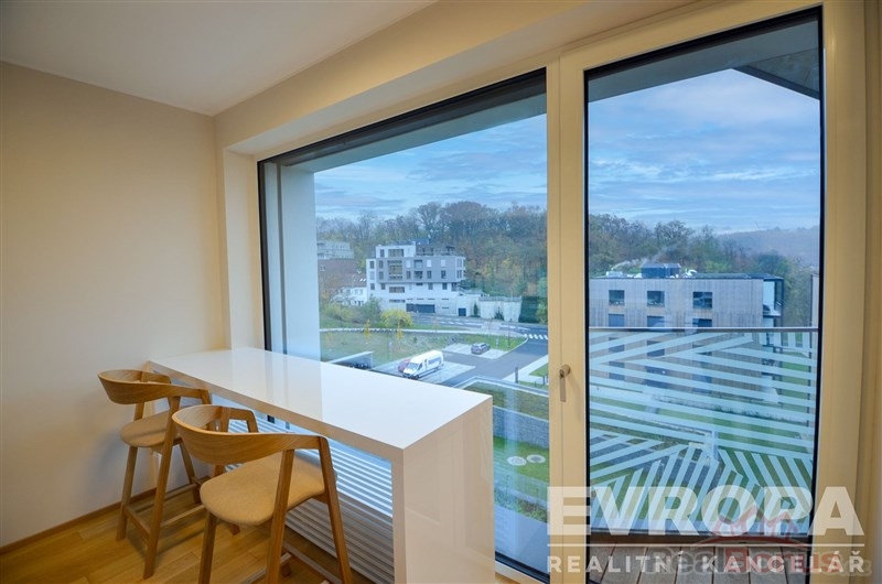 Byt se nachází ve 4.NP šestipatrového domu s výtahem. Provedení bytu je ve vysokém standardu, podlahy z pravého dřeva v obytných místnostech, koupelna s velkoformátovými keramickými obklady. Součástí vybavení koupelny je také žebříkový radiátor a zařizovací předměty značky Hansgrohe a Villeroy & Boch. Byt je dále vybaven rekuperací a předokenními žaluziemi. Vestavená skříň v celé vstupní chodbě a skříň přes celou délku stěny v ložnici nabízí ohromné množství úložného prostoru.