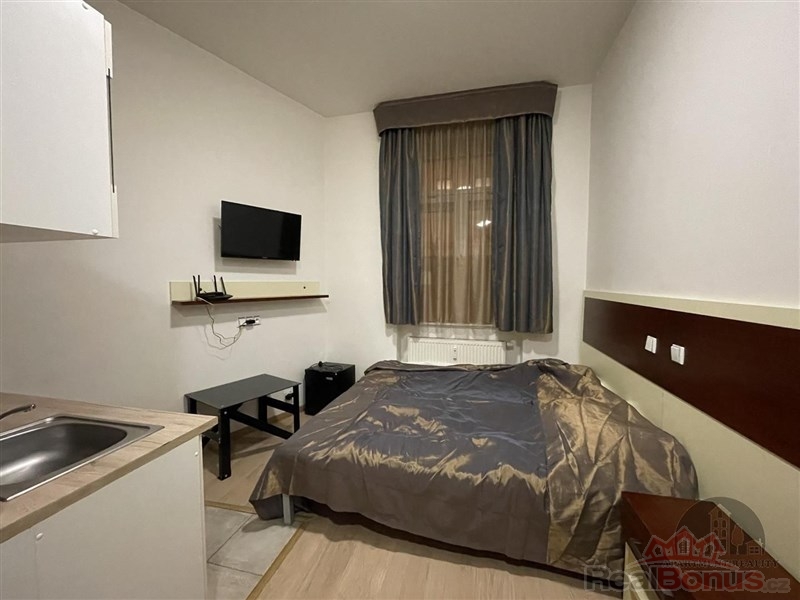 Nabízíme pěkný byt 1+kk v Prokopově ulici. Byt se skládá z pokoje a koupelny. Pračka a sušička je možné využívat v domě za poplatek 60 kč/hod Dvouplotynka muže byt dodána, mini lednička. Byt může být zařízen nábytkem nebo nemusí. Volné ihned. Domácí zvíře dovoleno.