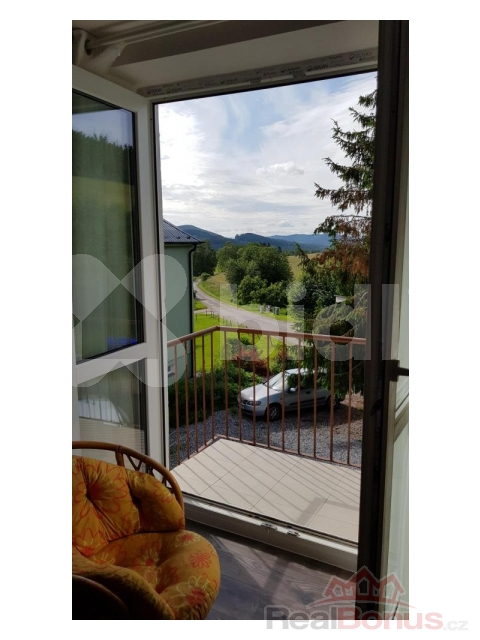 Má menší balkon orientovaný na jih. Nová izolační okna na východ a na západ s výhledem na zalesněný horizont.