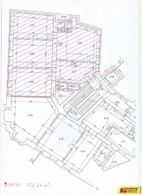 Okna jsou ve většině místností do ulice Masarykova, a dále i do dvora. Tato kancelářská jednotka má stejně jako i ty ostatní v domě svůj vlastní elektrokotel k vytápění a elektrické ohřívače vody (sazba el. energie 20 hodin NN + 4 hodiny VN) a svůj vlastní podružný elektroměr a podružný vodoměr měřící spotřebu el. energie a vodného a stočného na každou tuto jednu kancelářskou jednotku. Takže takto jsou měřeny veškeré energie včetně vytápění, které nájemce opravdu ve skutečnosti spotřebuje.