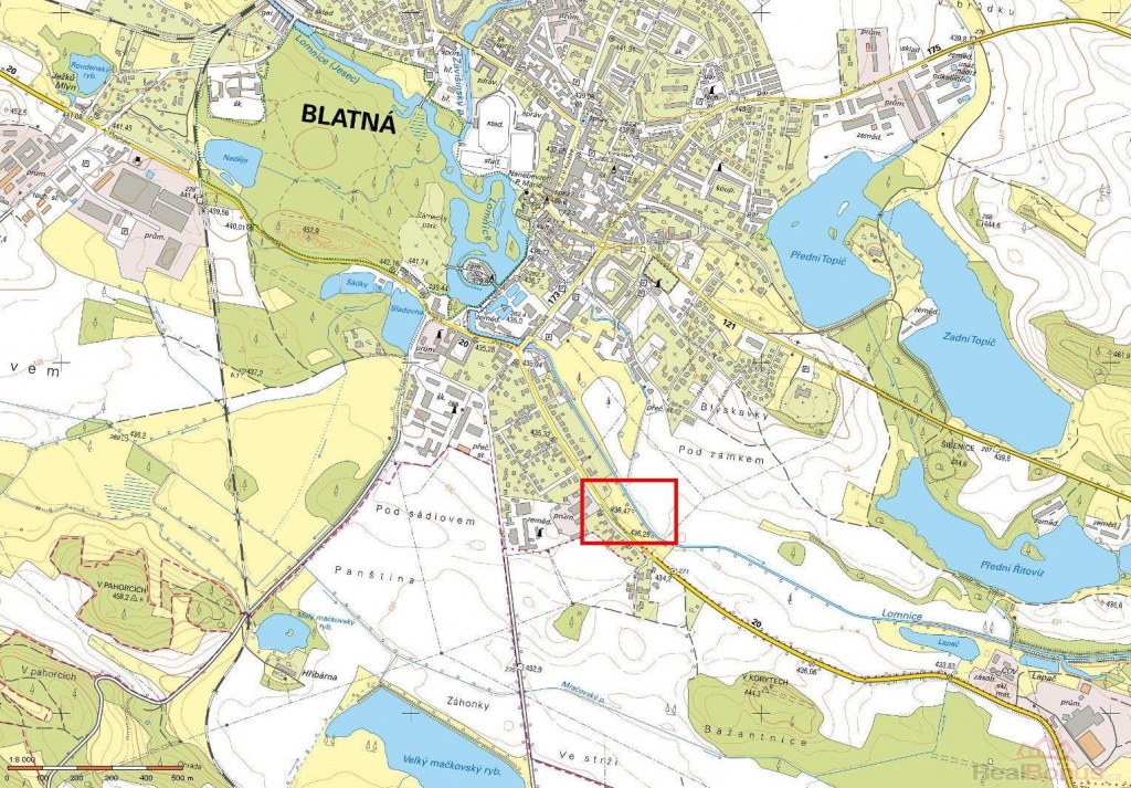 Pozemek leží na okraji města Blatná, v klidném prostředí obklopeném přírodou. Blatná nabízí plnou občanskou vybavenost - obchody, služby, dopravu.