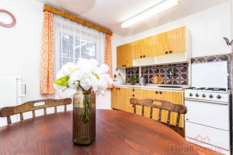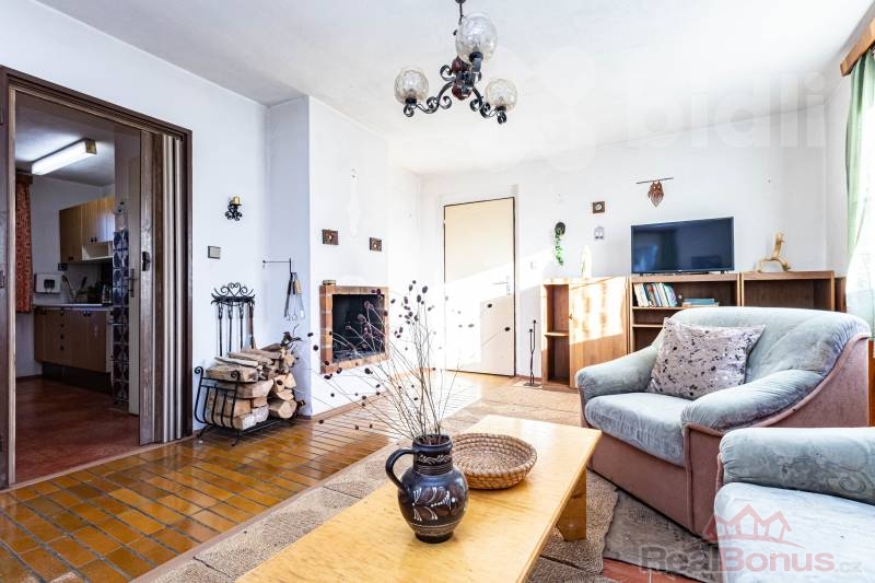 Srdcem domu je světlý obytný prostor a kuchyně, kde v zimě zahřejí krbová kamna a vytvoří neopakovatelnou atmosféru.