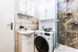 V přízemí najdete také ložnici a dětský pokoj. Tyto místnosti jsou vzájemně propojené, avšak dětský pokoj má i vlastní vstup z chodby, což zajišťuje flexibilitu využití.