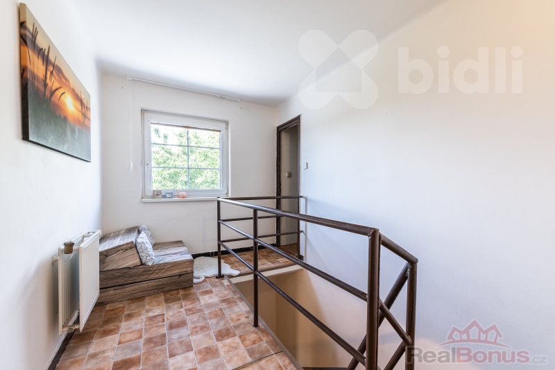 V patře je aktuálně jeden zařízený pokoj a chodba, nicméně prostor zde nabízí možnost jednoduché úpravy a vytvoření další obytné místnosti dle vašich potřeb. V ostatních prostorách se nachází půda, která je zateplená kanadskou pěnou Icynene. Dům samotný je také zateplený, s novou fasádou. To zajišťuje příjemnou teplotu v létě a nízké náklady na vytápění v zimě. Měsíční náklady na elektřinu včetně vytápění tepelným čerpadlem jsou pouze 3000 Kč, náklady na vodu 1000 Kč.Ve sklepních prostorách, které jsou pod polovinou domu, najdete také místo pro uskladnění potravin, sportovního vybavení nebo dalších věcí, které chcete mít po ruce, ale mimo obytnou část.