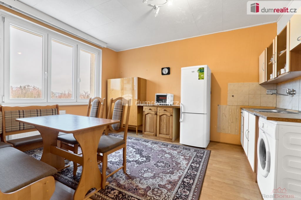 Cena vč. právních služeb a provize RK, Dumrealit.cz Vám zprostředkuje prodej slunného bytu 1+1 v Karlových Varech, ve velmi oblíbené lokalitě Rybáře. Bytová jednotka o celkové ploše 35 m (vč. sklepa) se nachází v 5. patře zatepleného panelového domu s výtahem z celkových sedmi. Byt má nová plastová okna vč. parapetů a tělesa radiátorů, jinak je v původním udržovaném stavu. K bytu samozřejmě náleží sklep. Dům je velmi čistý, udržovaný, zateplený a má nový výtah, bezpečnostní dveře, poštovní schránky a kamerový systém. Snadné parkování před domem. Díky ideální poloze domu máte veškerou občanskou vybavenost snadno a rychle dostupnou (dětská hřiště, školy, školky, obchody, lékař, zastávka MHD, autobusové a vlakové nádraží). Upravené cyklostezky, turistické trasy a nedaleké lyžařské areály vám umožní bohaté celoroční sportovní vyžití. Tento byt je skvělou investicí do vašeho bydlení v Karlových Varech. Součástí fotek je vizualizace možného budoucího zařízení bytu. Tuto nemovitost lze hradit hypotečním úvěrem, který Vám rádi pomůžeme vyřídit v našem hypotečním centru. Ev. číslo: 653236. Energetický štítek: C