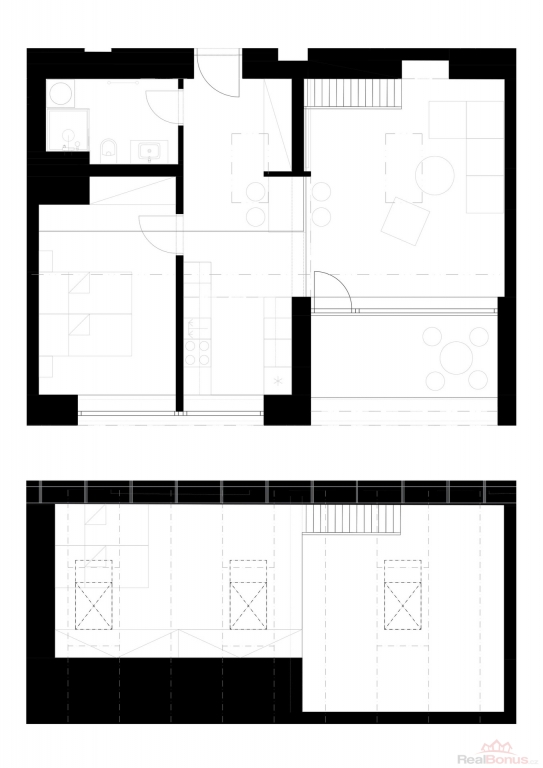 Apartmán se pronajímá částečně vybavený ? k dispozici je nová kuchyňská linka s elegantní kombinací černé a dřeva, včetně spotřebičů (myčka, lednice, varná deska, trouba, mikrovlnka). K dispozici jsou zde nevybavené prostory, které můžete využít dle své fantazie a tvořivosti. Koupelna je moderní a prostorná ? sprchový kout, umyvadlová skříňka, toaleta a pračka.