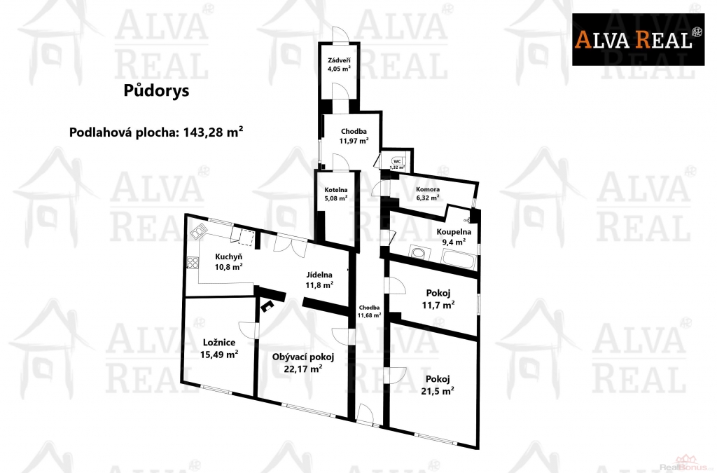 | Celková podlahová plocha | 143 m² |