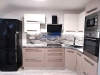 Kuchyňská linka je vybavena vestavnými spotřebiči a ledničkou s mrazničkou.