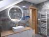 Podkrovní řešení dodává bytu jedinečný charakter a zároveň zajišťuje dostatek přirozeného světla.