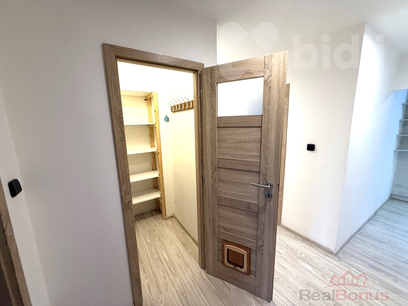 V bytě je dostatek úložného prostoru - k dispozici jsou dvě zděné komory a šatní skříň v ložnici.