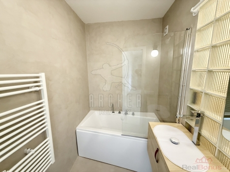 Byt prošel částečnou rekonstrukcí - má vyzděné jádro, novou koupelnu s WC, kde byla místo dlažby použita kvalitní betonová stěrka, a vše je laděno do moderního stylu. Součástí jsou také nové interiérové dveře a kuchyně se spotřebiči.
