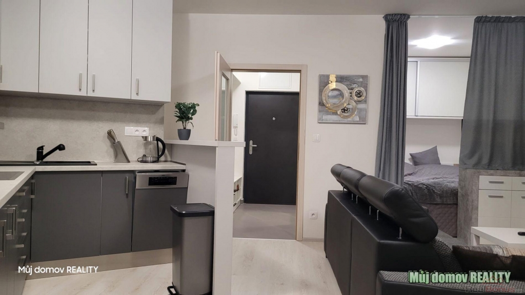 Dispozice bytu: vstupní chodba, moderní obývací pokoj s kuchyňskou linkou, ložnice,