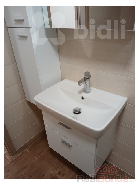 Kuchyň je dělaná na zakázku a nabízí dostatek úložného prostoru. Koupelna je vybavena sprchovým koutem, Toaleta je oddělené. Byt má vlastní lodžii, která poskytuje příjemný prostor k posezení nebo odpočinku.