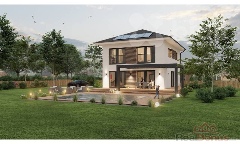 Tento dům dokonale spojuje moderní estetiku s praktickými potřebami rodiny, což z něj činí skvělou volbu pro pohodlné rodinné bydlení.
