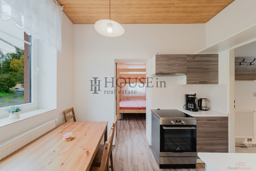 Nabízíme k prodeji pěkný, kompletně zrekonstruovaný a zařízený apartmán o dispozici 2+1 a podlahové ploše 41 m2, který se nachází v přízemí bytového domu na klidném místě u lesa v obci Kořenov, okres Jablonec nad Nisou. Apartmán je ideální volbou jak pro vlastní rekreaci, tak jako výhodná investice do krátkodobých pronájmů. Má výborné hodnocení na platformě Booking.com, a je možné převzít veškeré know-how.