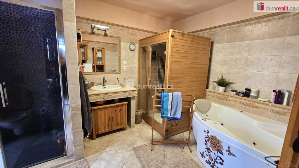 Fotovoltaická elektrárna 10kWp s bateriovým úložištěm, ohřev vody hybridními boilery s tepelným čerpadlem, klimatizace Wiíndfree, předokenní žaluzie na dálkové ovládání, hydromasážní vana, infrasauna. V půdní vestavbě fitness s kardio, bezpečnostní zařízení. dobíjecí stanice pro elektrokola. automatická závlaha trávníku.