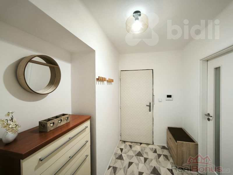 Dispozice bytu je velmi dobře promyšlená. Z prostorné vstupní chodby se vchází do kuchyně, která navazuje na obývací pokoj. Z obývacího pokoje je pak vstup do dalšího samostatného pokoje. K bytu náleží také prostorný sklep, který poskytuje dostatek úložného prostoru.