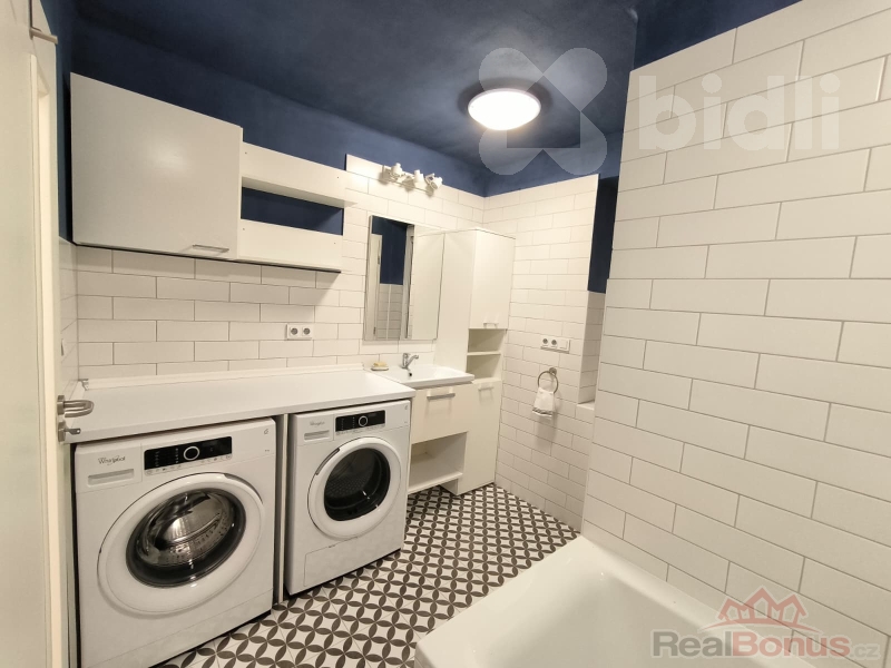 Byt je kompletně vybaven spotřebiči a nábytkem dle fotografií. K dispozici je myčka, lednice, indukční varná deska, elektrická trouba, pračka i sušička. Veškeré vybavení je sladěno do moderního stylu a celý byt působí velmi čistým a současným dojmem.