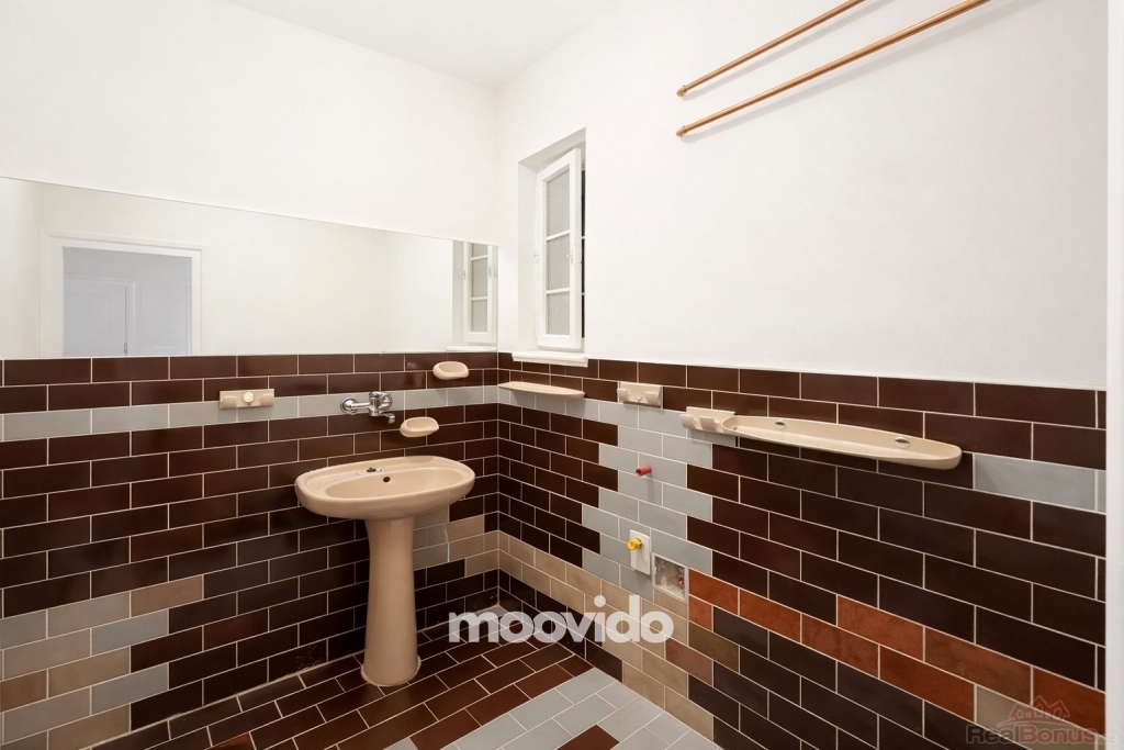 Byt se nachází ve 3. patře udržovaného cihlového domu. Byt je nezařízený, na podlahách jsou nově vybroušené parkety.