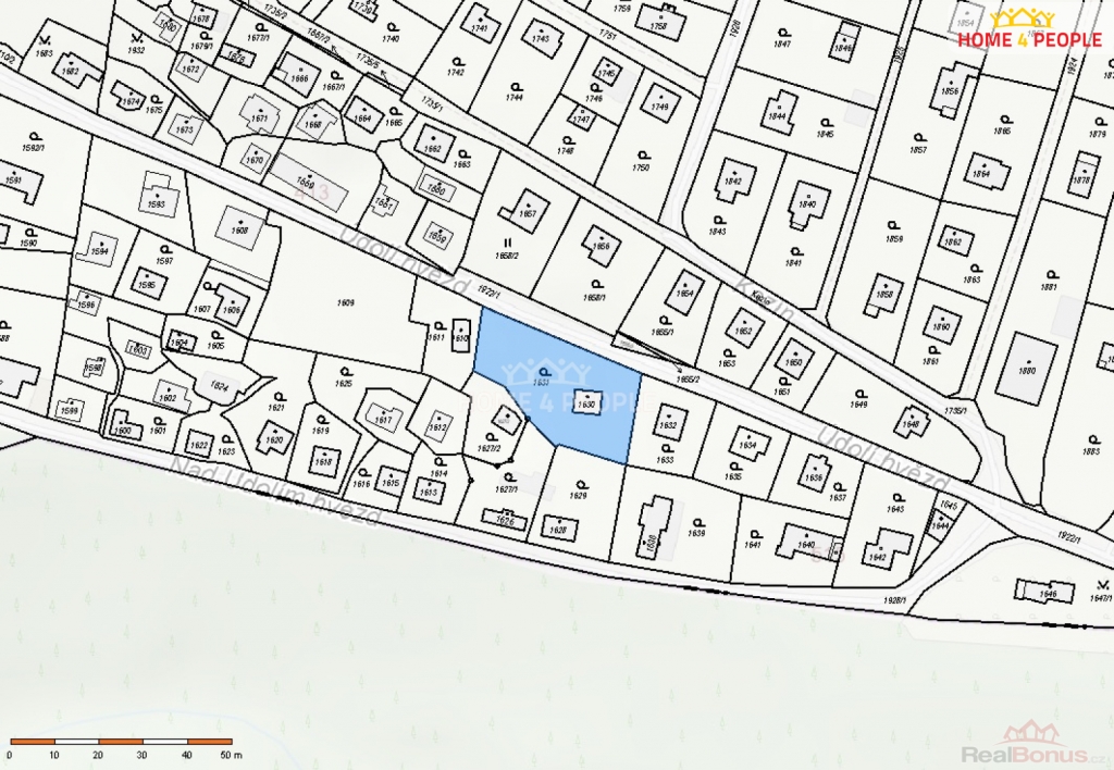 Pozemek má celkovou výměru cca 709 m, předmětem prodeje je tedy ideální polovina podílu.