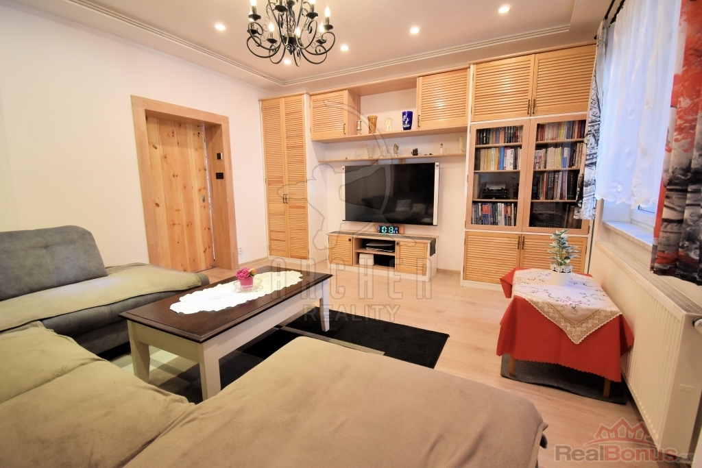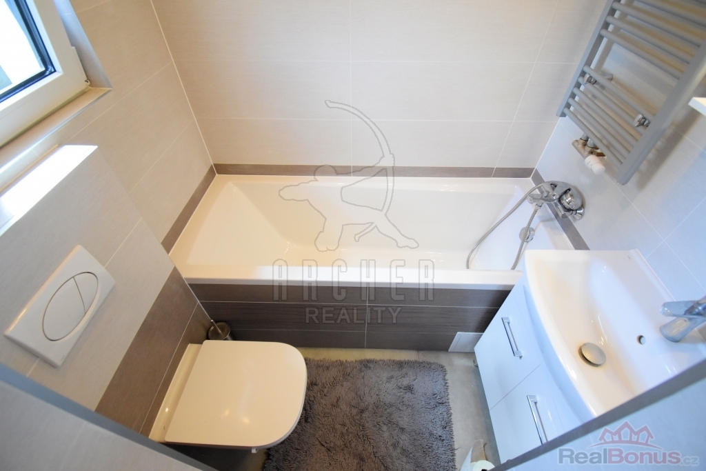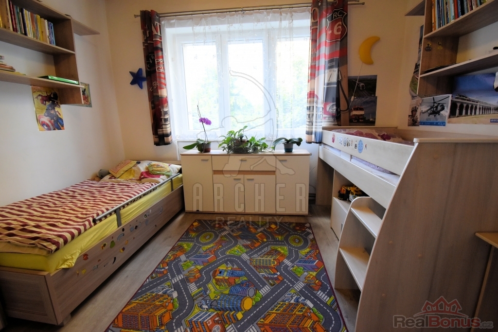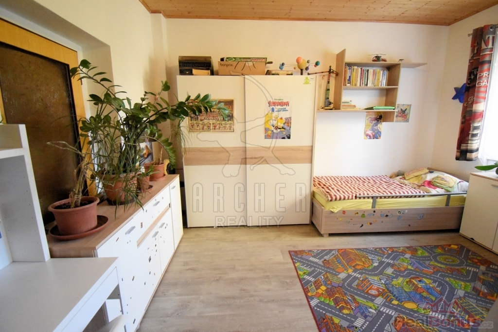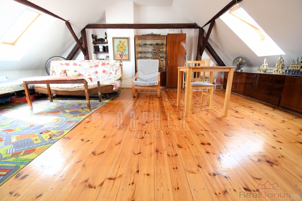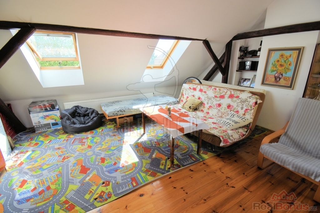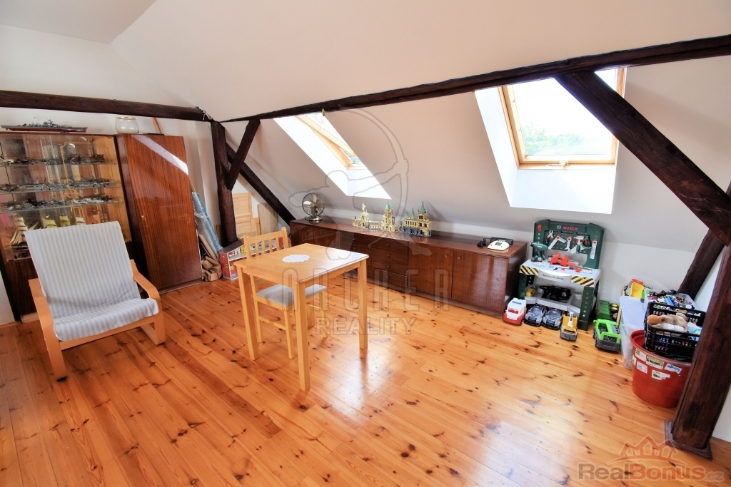 Bonusem je prostorný slunný obytný pokoj v podkroví, který je nyní využíván jako herna. Lze jej případně jednoduše rozdělit a vytvořit z něj dvě plnohodnotné místnosti.