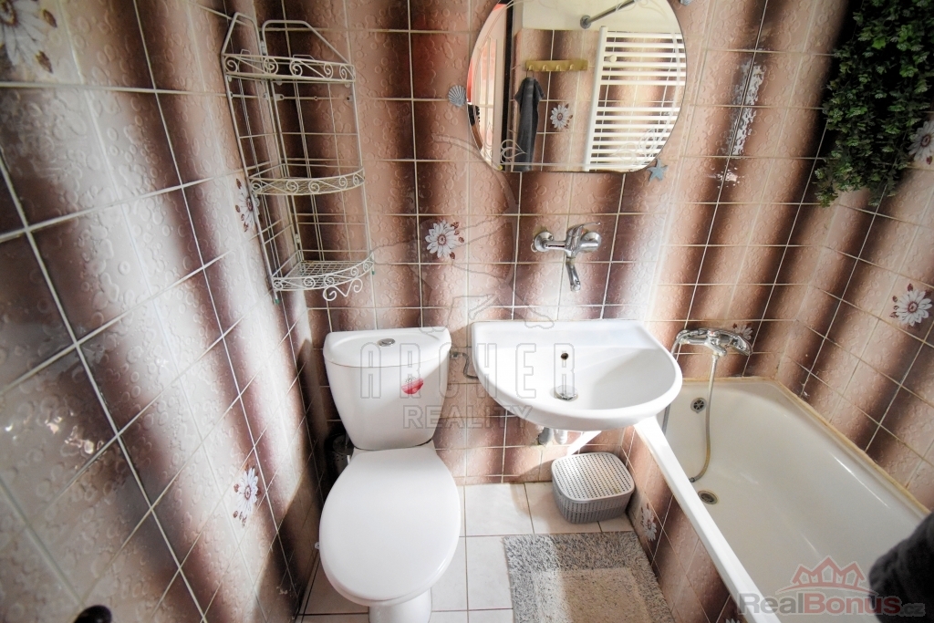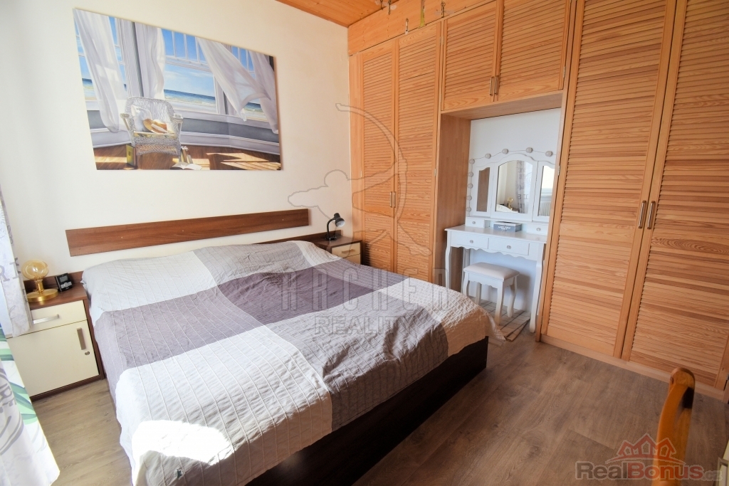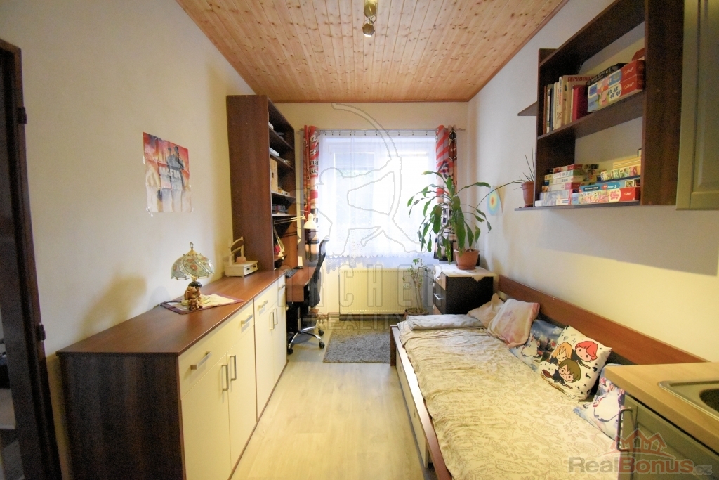 V patře naleznete ložnici a dva dětské pokoje, v jednom z pokojů menší kuchyňská linka. V mezipatře pak další, zcela nová koupelna.