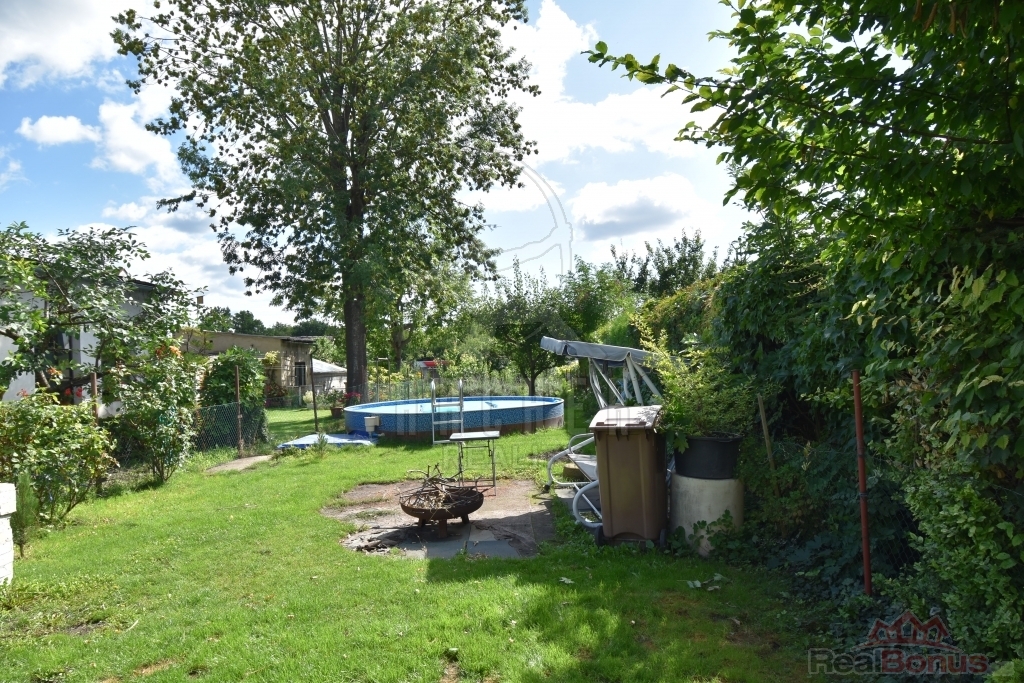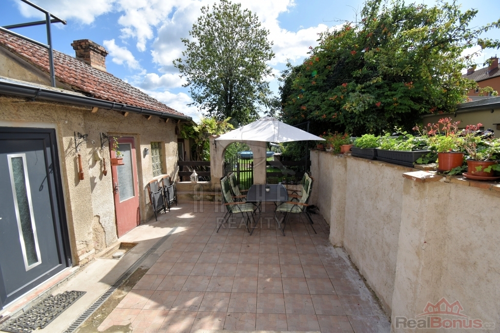 Za domem terasa s posezením a příjemná udržovaná zahrada s ovocnými i okrasnými stromy, rozdělená na užitkovou a relaxační část. Díky své velikosti poskytuje dostatek prostoru k vyžití pro děti. Na pozemku také zděná přístavba, kde je dílna a kůlna.