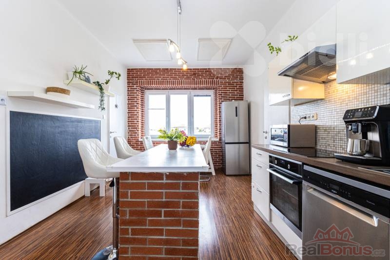 Nabízíme k prodeji prostorný byt o dispozici 4+1, který se nachází ve 2. patře zděného domu po rekonstrukci. Užitná plocha bytu činí 87 m2, celková plocha je 97 m2. Byt nabízí moderní kuchyni s vestavěnými spotřebiči a špajskou, prostorný obývací pokoj s krbovými kamny, dětský pokoj a ložnici se vstupem na lodžii. Dále je k dispozici vstupní chodba, pracovna se šatnou, koupelna s vanou i sprchovým koutem a toaleta oddělená od koupelny. Byt zůstane částečně vybaven.