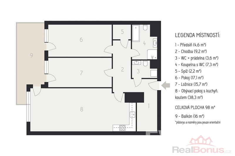 | Celková podlahová plocha | 98 m² |
