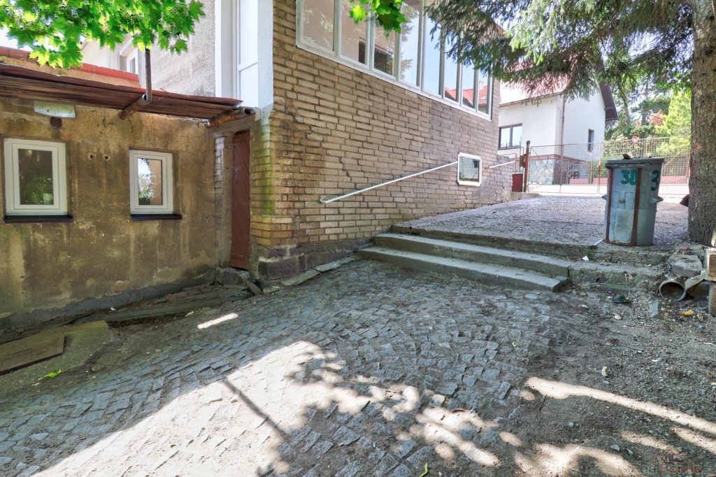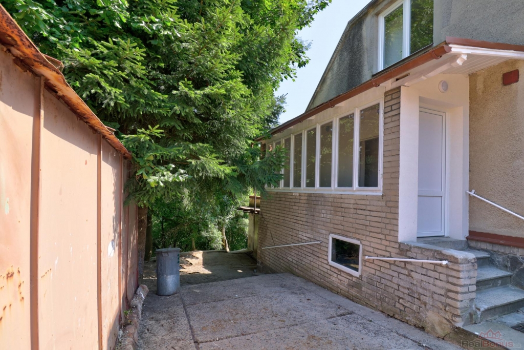 Součástí domu je zahrádka, dvorek a garáž. Dům je atypicky dispozičně řešen v obytném podlaží se nachází zádveří, chodba, kuchyně a pokoj, v podkroví druhý pokoj a půda. Koupelna, WC a komora (špajz) jsou umístěny v suterénu.