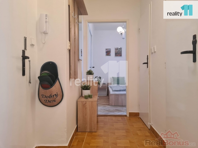 Zálohy za energie nejsou součástí nájmu., Zprostředkuji pronájem slunného bytu dispozice 2+1 velikosti 50 m, který se nachází ve zvýšeném přízemí bytového domu, v žádané sídlištní zástavbě ulice U Růžáku. Ulice plná zeleně nabízí klidné a pohodové bydlení a bohatou občanskou vybavenost v dosahu, včetně obchodů, služeb nebo blízkého vlakového nádraží. Byt je zařízen nábytkem, v kuchyni je lednice s mrazákem, myčka a mikrovlnná trouba, v koupelně je pračka. K bytu náleží sklepní kóje a k dispozici novým nájemcům je i kolárna a kočárkárna. Parkovat lze v blízkosti domu.
