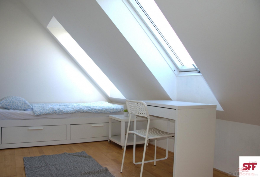Neplatíte provizi - pronájem vybaveného pokoje s přístupem na terasu ve sdíleném bytě, Praha 6 Pohořelec Nabízíme ke střednědobému nebo dlouhodobému pronájmu světlý a útulný pokoj o velikosti 11 m ve sdíleném bytě o celkové rozloze 76 m. Byt se nachází v 5. patře udržovaného historického domu bez výtahu v atraktivní lokalitě Praha 6 Pohořelec, jen pár minut chůze od Pražského hradu. Pokoj je vybaven postelí, pracovním stolem, židlí, komodami a šatní skříní. Společné prostory zahrnují plně vybavenou kuchyň s elektrickou plotýnkou, mikrovlnnou troubou, lednicí s mrazákem, myčkou nádobí a základním kuchyňským vybavením. K dispozici je také pračka se sušičkou. Byt má jednu koupelnu se sprchovým koutem, umyvadlem a toaletou. Lokalita nabízí jedinečné spojení historického kouzla a zeleně s výbornou dostupností do centra. V docházkové vzdálenosti jsou Petřínské sady, obchody, kavárny i restaurace. Tramvajová zastávka Pohořelec (linky 22 a 23) je jen pár kroků od domu, metro A Malostranská je dostupné tramvají přibližně za 10 minut. Nájemné včetně poplatků a internetu: pro jednu osobu: 16.500 Kč / měsíc Pokoj je ideální pro jednotlivce, kteří hledají pohodlné bydlení v klidné a reprezentativní lokalitě s výborným spojením do centra Prahy.