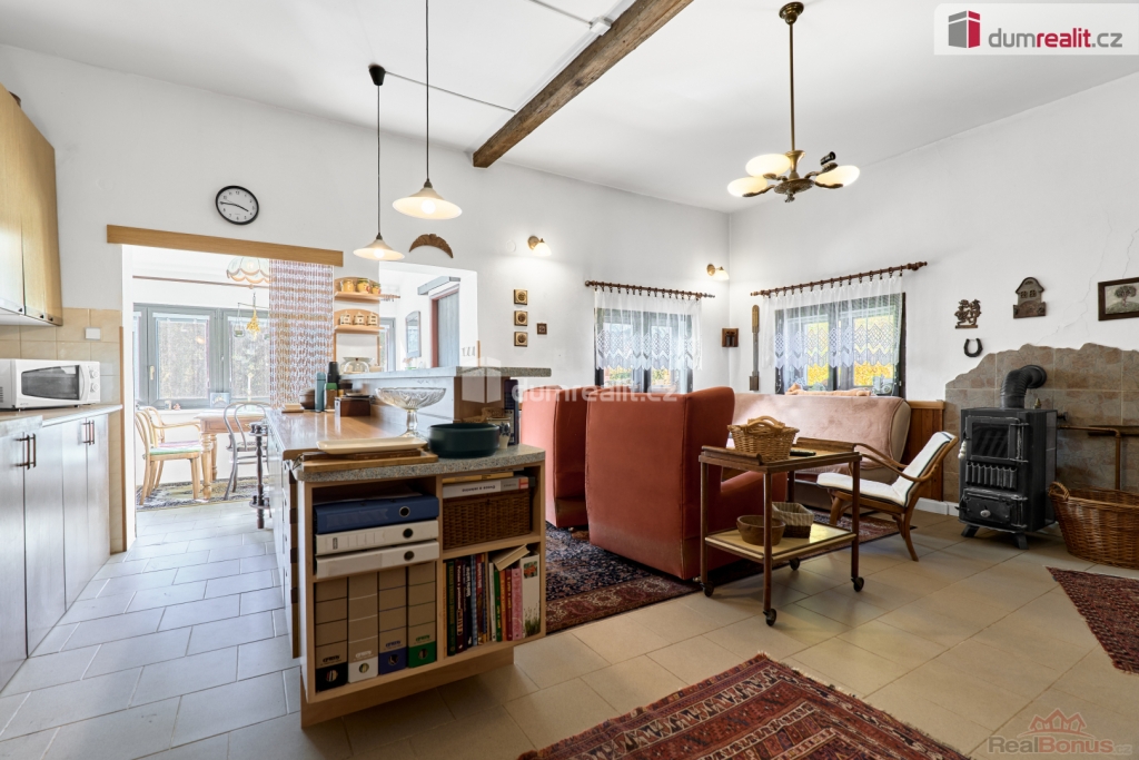V zahradě naleznete bazén, kde se můžete v horkých letních dnech osvěžit. Samotný dům byl dostavěn v roce 2001 a zdá se, že ho čas šetřil. Jedná se o částečně podsklepený dvoupodlažní objekt určený k trvalému obývání. Přízemí nabízí prostornou halu s kuchyňským koutem, jídelnou a spížemi, hostinský pokoj a sociální zařízení. V patře najdete dvě prostorné ložnice s výstupem na terasu, obývací pokoj, kuchyň se spíží a další sociální zařízení. K dispozici je také podkroví, které lze dále využít podle vlastních potřeb. Dům má dva samostatné vchody, dispozičně tedy může sloužit jako vícegenerační.
