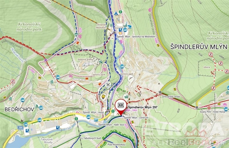 Špindlerova Mlýna. Prostory jsou ideální pro provozování obchodu, showroomu, kanceláří či jiné podnikatelské činnosti.