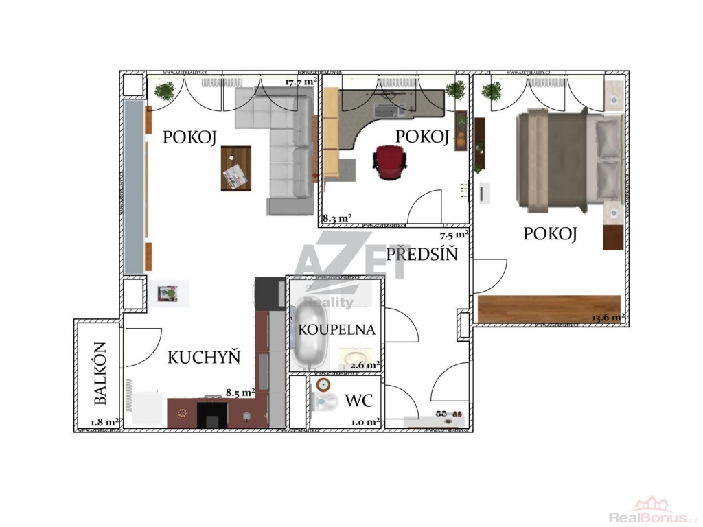 Hledáte útulný byt 3+kk s balkónem na dlouhodobý pronájem? Pak jste zde správně!