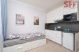 Nabízený byt o 23 m2 (43212) se nachází v prvním patře udržovaného domu s výhledem do zahrady. Byt se skládá z jedné hlavní místnosti, která slouží jako obývací pokoj, kuchyň i ložnice.