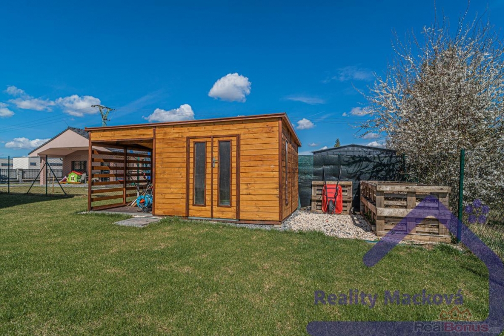 Dům je vybaven elektrokotlem, bojlerem, venkovními žaluziemi, zabezpečením obou pater i zahradního domku, elektrickou vjezdovou bránou a videotelefonem s přenosem obrazu i zvuku do mobilního telefonu. Samozřejmostí je parkování pro tři automobily přímo na pozemku a zahrada připravená k okamžitému užívání.