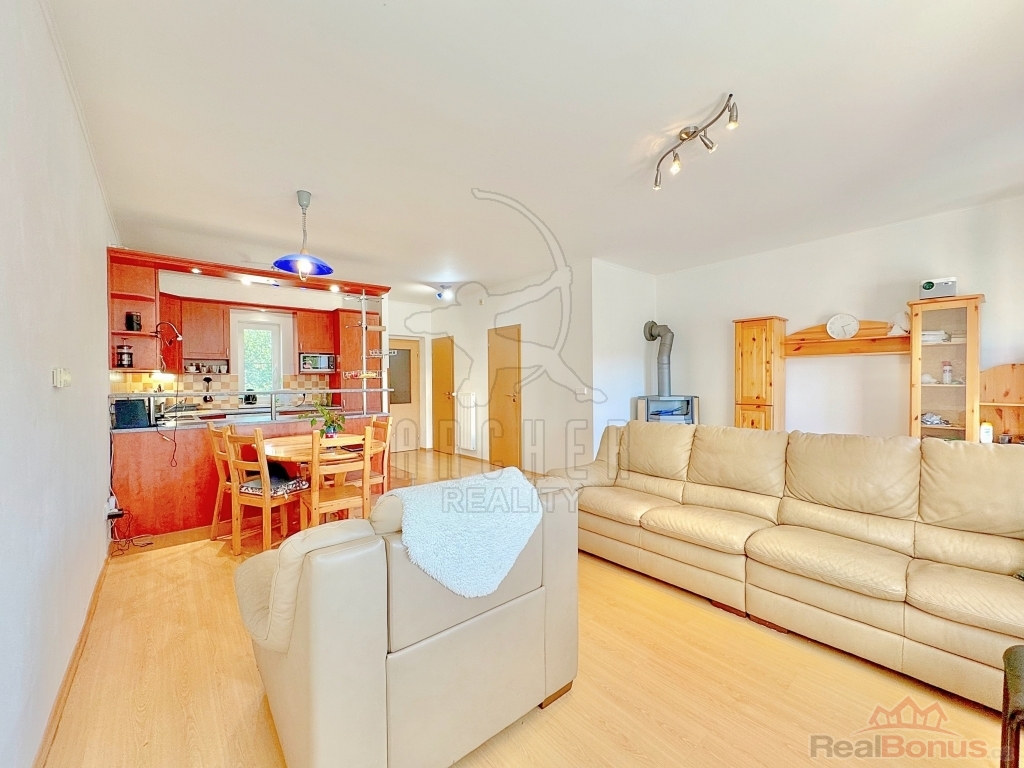V 1. patře najdete prostorný a útulný obývací pokoj propojený s kuchyní a vstupem na prosluněnou terasu nabízející naprosté soukromí. Na stejném podlaží je koupelna se sprchovým koutem a toaletou. Pro chladné dny jsou zde krbová kamna, která přináší pohodový pocit tepla z praskajících polen v ohni.
