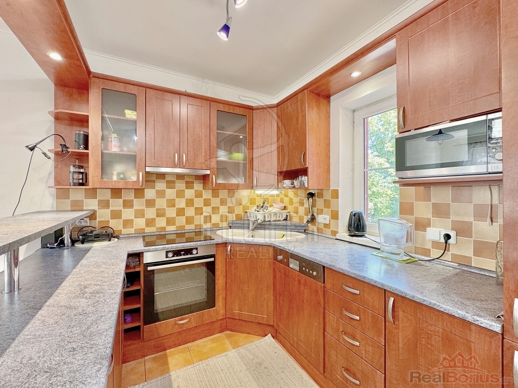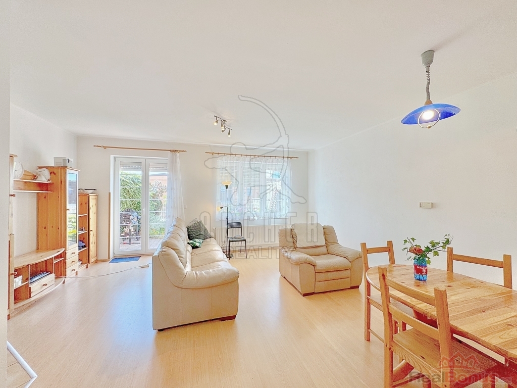 Velkým benefitem je prostorná terasa v 1. patře s otevřeným výhledem na střechy domů a přímým vstupem z obývacího pokoje přes francouzské dveře. Přímo naproti domu se nachází park se vzrostlými stromy a keři, který dotváří klidnou atmosféru lokality.
