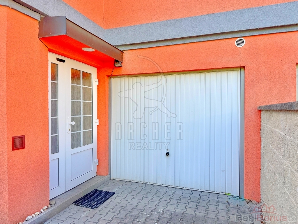 Dům má tři chytře řešená patra, propojená elegantním točitým schodištěm s nášlapy z masivního buku. V přízemí se nachází předsíň, garáž s přímým vstupem do domu, technická místnost s kotlem a komora.