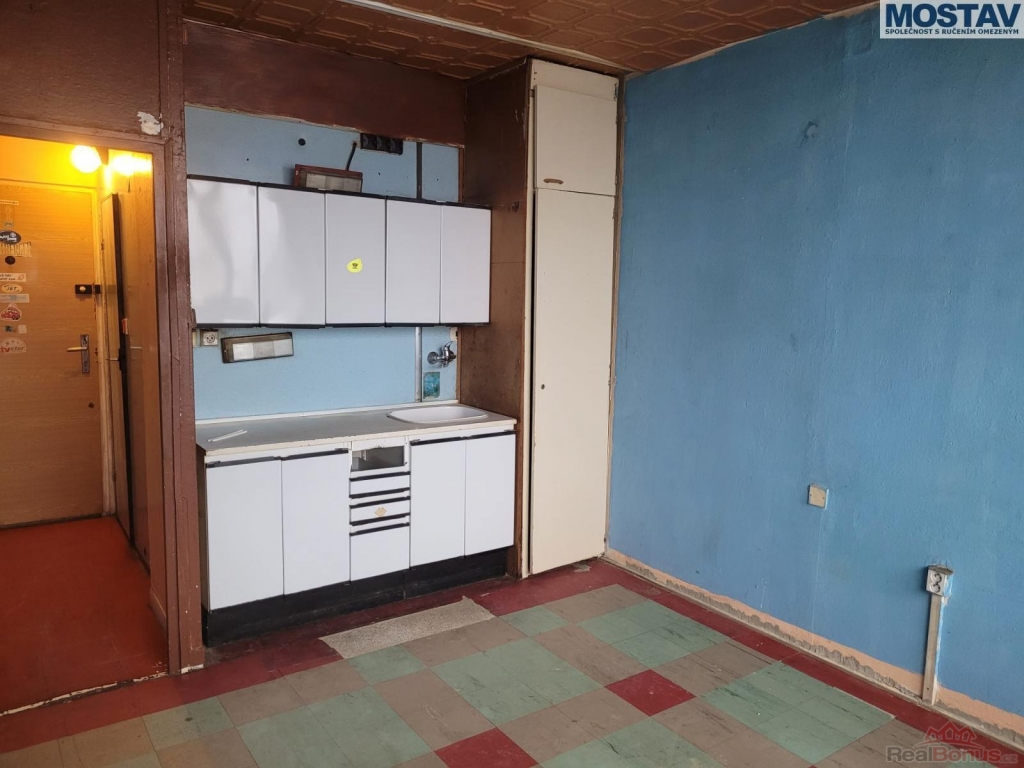 Mostav s.r.o., nabízí k prodeji bytovou jednotku s balkónem o velikosti 1+kk o celkové výměře 25 m2, situovanou ve 14. patře panelového domu s dvěma výtahy (osobní a nákladní). Byt je v původním zachovalém stavu, vhodný k rekonstrukci dle vlastních představ.