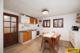 Samotná obytná část domu nabízí předsíň, koupelnu se sprchovým koutem a toaletou, prostornou kuchyni orientovanou do dvorku s možností vybudování francouzských dveří pro přímý vstup do zahrady. Na kuchyň plynule navazuje obývací pokoj s krbovými kamny, které dotváří útulnou atmosféru a dále samostatná ložnice.