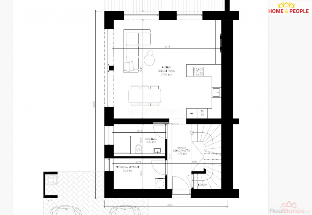 Cena včetně výstavby RD, IS, příjezdové komunikace a DPH., Zprostředkujeme Vám exkluzivní prodej projektu půldomu o velikosti 4+kk o podlahové výměře 118 m v Uherském Brodě části Těšov. Součásti uvedené ceny, která již zahrnuje DPH je dům na klíč, inženýrské sítě, přístupová komunikace a připojené místo EDG (EON), mimo plynu, pozemek, parkovací stání před domem pro dvě auta, veškeré projektové práce a stavebního povolení. Pozemek (č.3) o rozloze 569 m je na klidném místě obce. Šíře pozemku je 10,3 m. Dle územního plánu je pozemek veden a schválen pro rodinné bydlení. Jedná se o zděnou stavbu a nabízí se ve variantě na klíč. V projektu jsou možné variabilní úpravy dispozice (posuny příček či oken). Patrový dům je ideální pro 5 člennou rodinu s nízkými provozními náklady. Uvedená cena je za pozemek, kompletní stavbu domu v provedení na klíč, projektové dokumentace, vyřízení stavebního povolení, základové desky až po kolaudaci. V uvedené ceně můžete počítat také s finálními povrchovými úpravami exteriéru i interiéru, a to včetně elektroinstalací, sanitárního vybavení s bateriemi, interiérovými dveřmi včetně obložek a vytápění bude řešeno teplovodním podlahovým topením v kombinaci tepelného čerpadla se 180L zásobníkem na teplou vodu. Dle dohody změníme systém vytápění nebo vystavíme komín pro krbové kamna nebo pro využití krbové vložky. Kryté garážové stání spojené s domem nebo venkovní krytou či nekrytou terasu za příplatek. Pro náročnější klienty máme nabídku nadstandardního vybavení chytré domácnosti, klimatizaci, externí žaluzie, rolety, rekuperaci nebo fotovoltaiku. Doba výstavby cca 12-13 měsíců od vydání stavebního povolení a stavbu zahájíme do 10 dnů od jeho vydání. Smlouvy o dílo zašleme na vyžádání včetně položkového rozpočtu. Parametry domu: užitná plocha 118 m zastavěná plocha domu 74 m a rozměr domu je 7 x 10,65m, což vytváří 3m proluku mezi pozemky a tím i přístup na zahradu. Dům byl navržen jako dvojdům se samostatnými dvěma domy nezávislými na sobě a odděleny protihlukovou izolací. V blízkosti je veškerá občanská vybavenost. (Součástí ceny není kuchyňská linka a světla dokážeme za zvýhodněných podmínek zajistit přes naše dodavatele). Financování zajišťujeme a můžete využití našich služeb, při prodeji Vaší nemovitosti. Doporučuji jednak prohlídku pozemku. Tento dvojdům budeme v krátkém čase realizovat ve Zlíně. Více u makléře. Ev. číslo: 30982. Energetický štítek: A (48 kWh/m2/rok).