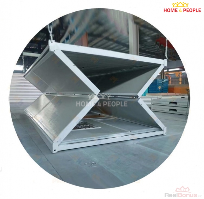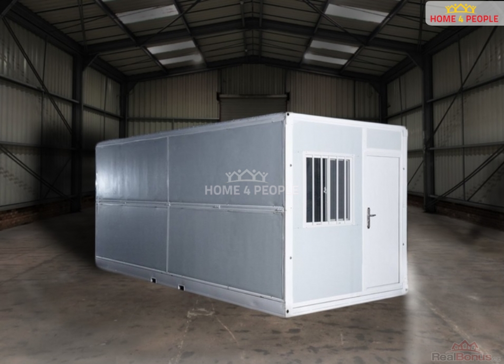 modulový typ, lze seskupovat, příp. dokoupit doplňkové vybavení, Hledáte nejlevnější skladový prostor, stavební buňku, dočasné bydlení či jiný prostor? Moderním řešením jsou revoluční modulární FLEXIBILNÍ SKLÁDACÍ KONTEJNERY cenově dostupné, ekologické a snadno přizpůsobitelné Vašim potřebám. Rozměry: 246 x 580 x 255 cm. Výbava: dveře, okna, izolace, podlaha, elektrické rozvody a světlo. Kontejnery jsou opláštěny sendvičovými panely z ocelových plechů a vyplněny minerální vatou o minimální tloušťce 50 mm. Vnitřní stěny jsou z PVC. Lze užívat jednotlivě nebo je sestavit vedle sebe. V případě potřeby sprchy a WC lze toto vyřešit přidáním sanitárního samostatného kontejneru.