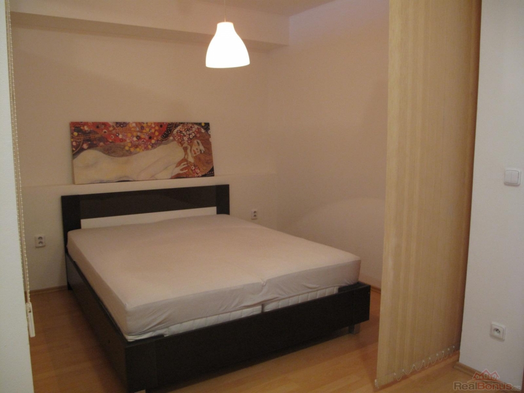 Byt se nabízí částečně vybavený. Součástí kuchyně je prostorná kuchyňská linka s lednicí, elektrickou troubou, sklokeramickou deskou a digestoří. Obývací části dominuje pohodná černá kožená sedací souprava. Spací část je oddělena zdí, což umožňuje prostor využít téměř jako 2+kk. Součástí vstupní chodby je velká třídveřová prosklená vestavěná skříň s dostatkem úložného prostoru. V prostorné koupelně se nachází vana, umyvadlo se zrcadlem, pračka a toaleta.