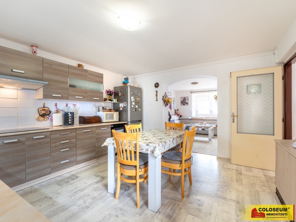 Exkluzivně Vám nabízíme ke koupi rodinný dům v Božicích. Dispozičně je dům řešen jako 3+1 s možností dalšího rozšíření jak o garážovou jednotku s krbovými kamny, která sloužila k bydlení, tak o místnosti na dvoře (cca 21m2 a 14m2), nad kterými je další půdní prostor (cca35 m2), nachystaný k rekonstrukci. Za garáží se nachází prostor pro zrekonstruování samostatné toalety. Oceníte velký, krásně upravený dvorek, na kterém se nachází i nádrž na dešťovou vodu a ze kterého se vchází do zahrady o ploše 759m2, která je mimo jiné také stavební parcela a lze na ni postavit rodinný dům. Celková plocha pozemku je 1418m2.