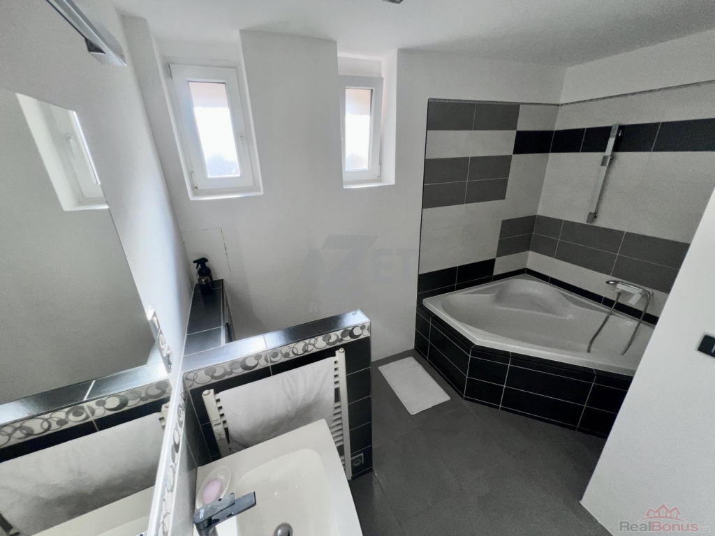 Byt prošel kompletní rekonstrukcí nová plastová okna, rozvody elektřiny v mědi, nové jističe, podlahy a prostorná koupelna s rohovou vanou. Celý interiér je navržen s důrazem na komfort moderního bydlení i útulnou atmosféru podkrovního prostoru, díky šikmým stropům a dřevěným prvkům působí interiér útulně a zároveň vzdušně.