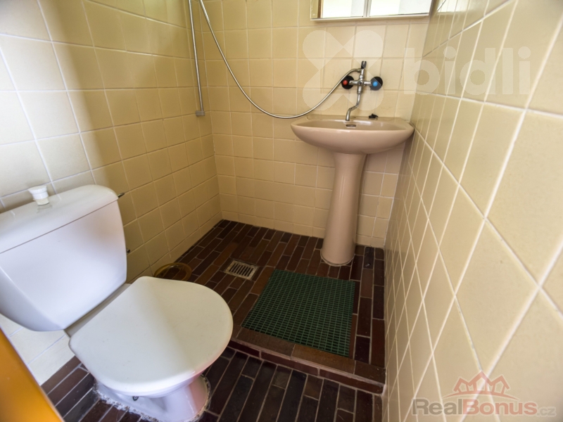 1.NP: Kuchyně se zázemím, koupelna s umyvadlem, sprchovým koutem a toaletou